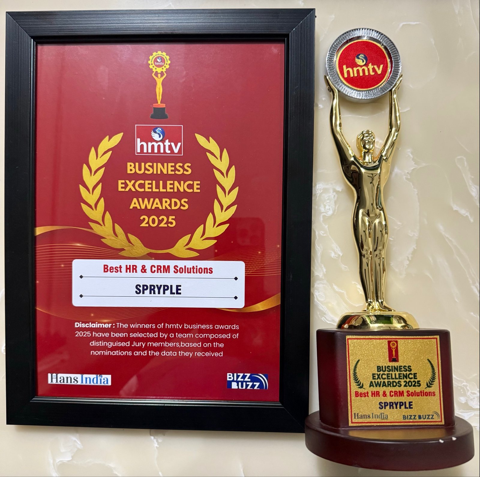Spryple is proud to be recognized as the Best HR & CRM Solution for Small & Medium Businesses in India at the HMTV Business Excellence Awards 2025, held in Hyderabad. This recognition reflects our continued commitment to building simple, reliable, and impactful HR and CRM solutions for growing businesses across the country.